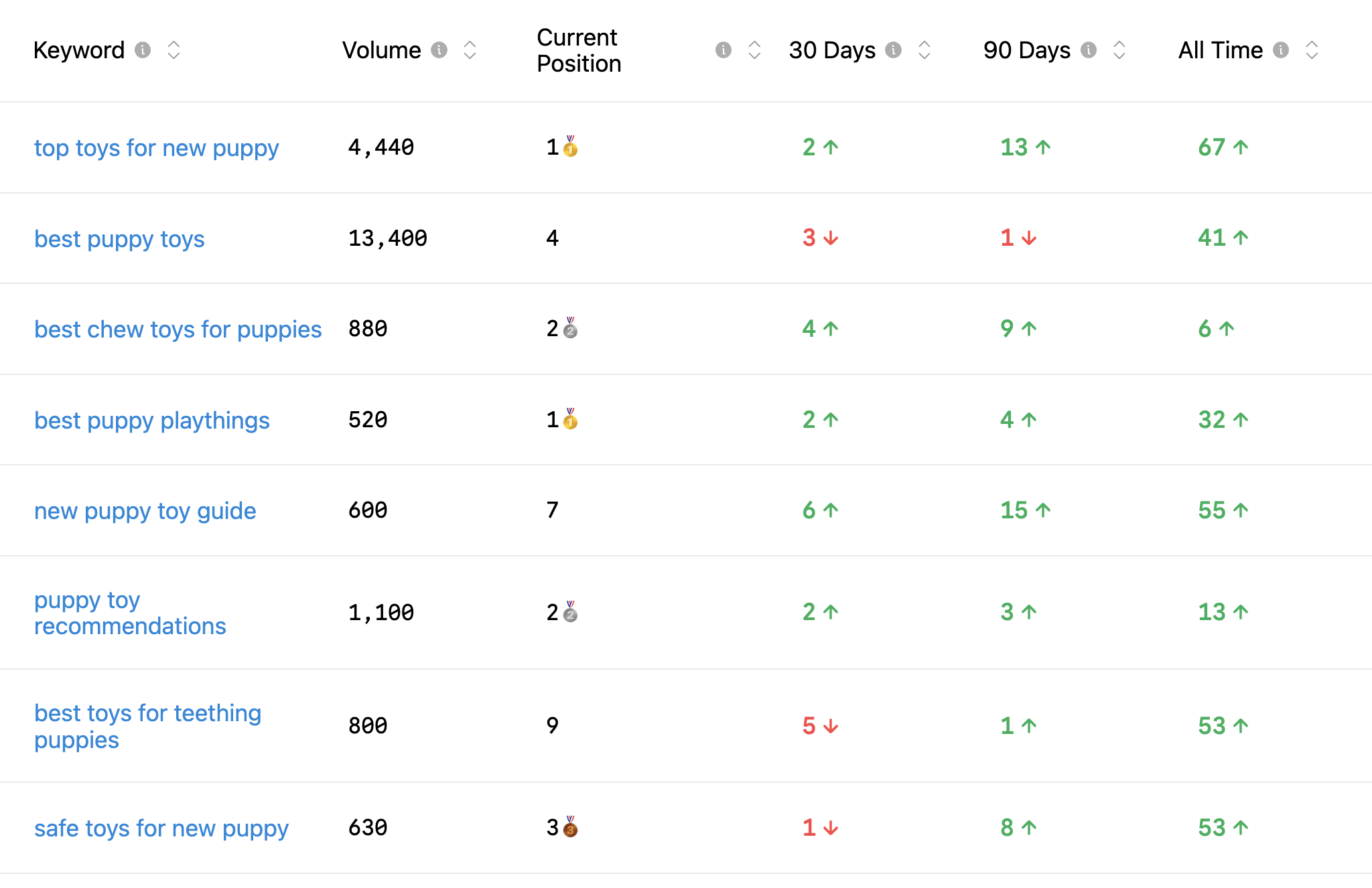 Explore and analyze all keywords related to your WordPress blog. Whether you're trying to rank for highly competitive transactional affiliate terms, or looking for informational keywords for your blog - you can find it all with our detailed keywords report. Find as many phrase match keywords as you'd like, and do a deep dive on our related match keywords for more ideation.